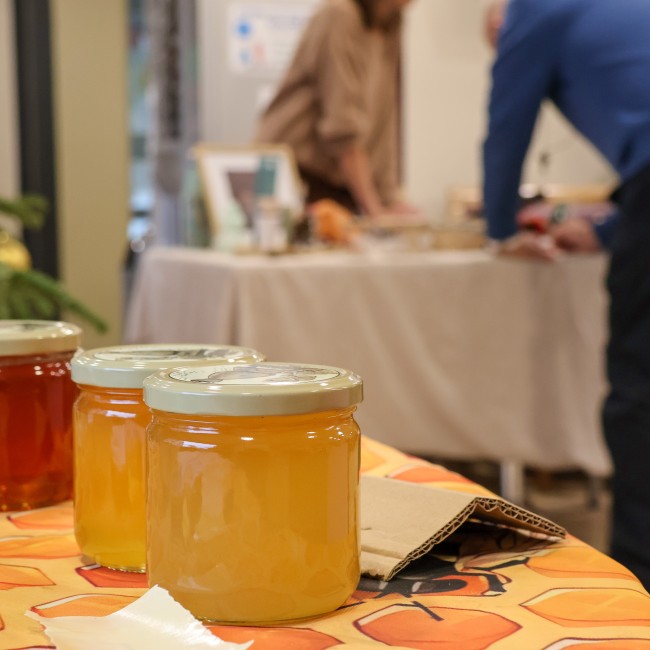 Le marché de Noel s'est tenu le mercredi 10 décembre de 14h à 16h dans le hall. Plusieurs exposants au milieu d'une odeur d'épices du jus d'orange chaud et d'une dégustation de sablés confectionnés par les résidents. Un bel après midi pour préparer Noel.