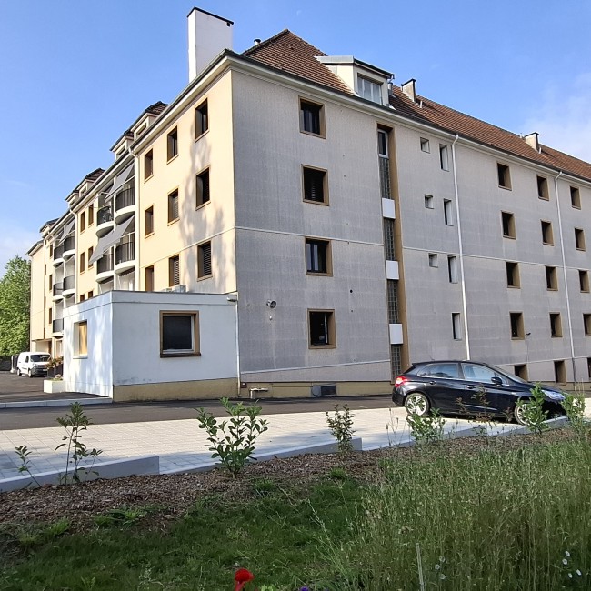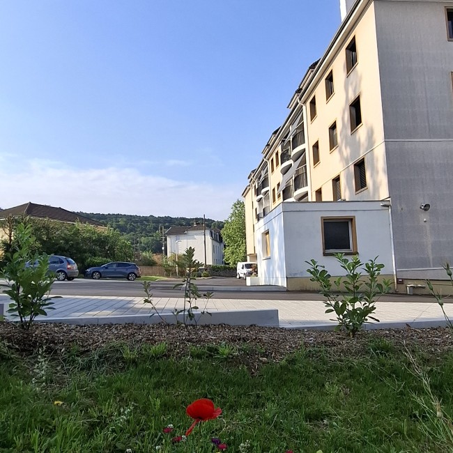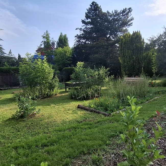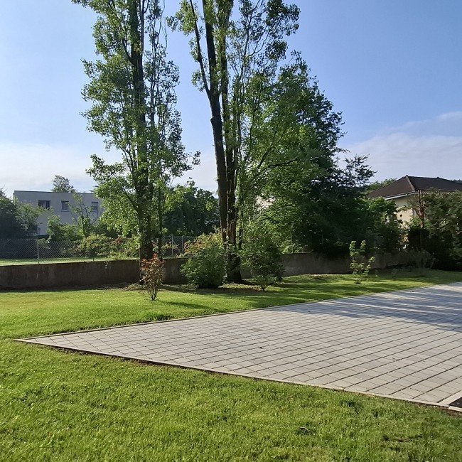 Apres plusieurs semaines de travaux , le parking est terminé. Belle vue sur le verger, les arbres, les fleurs et le jardin. Le jardin est aménagé et entretenu par les enfants du DITEP ainsi que les résidents.
