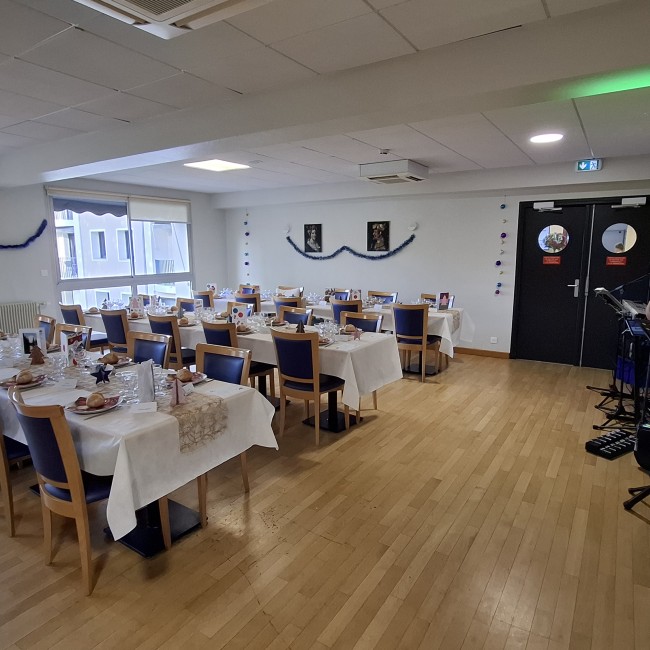 Très beau repas de Noel en compagnie des résidents, des familles, des équipes et de la direction. Excellent repas confectionné par la cuisine. Très bonne ambiance avec des chants, de la musique et de la danse.