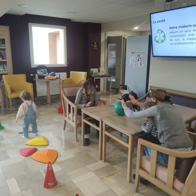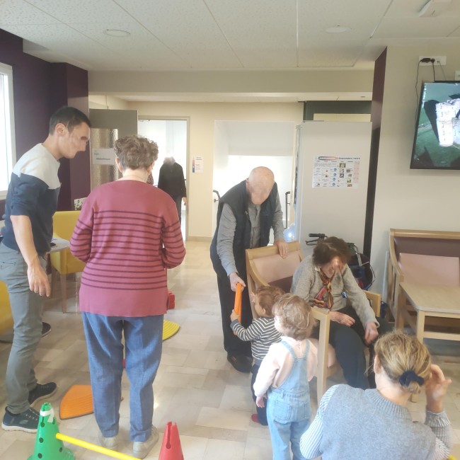 Activité physique intergénérationnelle ce lundi 30 septembre à la résidence. Moment très apprécié par les petits et les grands.
