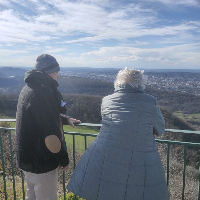 Lundi 13 mars, sortie avec plusieurs résidents au belvédère de Montfaucon. Magnifique vue sur les toits de Besançon et le château de Montfaucon. Sortie ensoleillée très appréciée malgré un vent décoiffant.